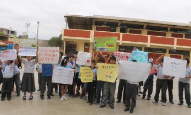 Con pancartas en mano alusivas al respeto a la vida, los alumnos del 4to “D” exigimos la presencia del Ministerio Público para denunciar la situación que están estudiando los menores de edad.