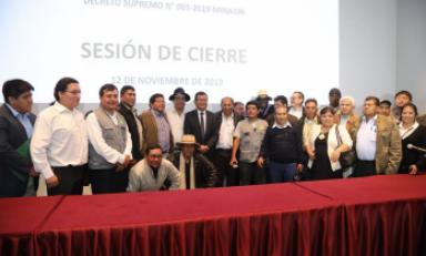 gestión de recursos hídricos, asociatividad e institucionalidad y de agricultura familiar, que estuvo integrada por funcionarios de seis ministerios (PCM, MEF, MINAGRI, MIDIS, PRODUCE y MINCETUR) y representantes de las organizaciones agrarias.
