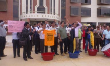 El acto fue firmado por la representante de la Primera Fiscalía Provincial de Prevención del Delito, Ivonne Zárate Izquierdo, el Defensor del Pueblo, Julio Hidalgo Reyes, el alcalde Epifanio Cubas Coronado, además del secretario de los trabajadores empleados, Arturo Huancas Bejarano y funcionarios municipales.
