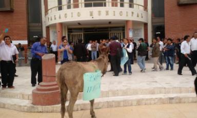 Trabajadores de la comuna de José Leonardo Ortiz inician lucha de protesta con un burro