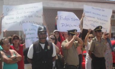 Chiclayo en Línea.- Un grupo de vecinos de Pimentel realizó una protesta durante la ceremonia en homenaje al 101° aniversario del natalicio del héroe nacional, capitán FAP José Abelardo Quiñones Gonzáles, que se llevaba a cabo en presencia de autoridades locales en la plaza principal de este distrito.
