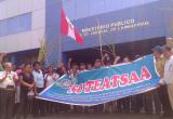 Chiclayo en Línea.- Con banderolas y arengas, los transportistas de la empresa público “San Pedro Pescador” marcharos por las diferentes calles del distrito de Santa Rosa hasta llegar a la comuna para una reunión con el burgomaestre William Merino.