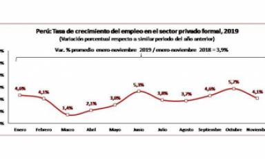 Con este resultado, el empleo formal en el sector privado acumuló un crecimiento de 3,9% entre el periodo enero-noviembre de 2019 respecto al mismo periodo del año anterior.