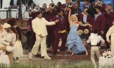 La expectativa de ver al reggaetonero puertorriqueño se transformó en asombro cuando, en su lugar, irrumpió por sorpresa la estrella estadounidense Lady Gaga. Ataviada con un impecable traje azul y escoltada por una orquesta tropical, la cantante tomó el control del espectáculo para cantar 'Die With a Smile', junto a una banda de salsa.