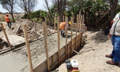 Igualmente, con un financiamiento de S/ 2’395,540.74 se ejecuta la rehabilitación del dique Bocatoma Huaca de La Cruz - Río La Leche – Íllimo, y las metas son construir 800 metros de dique, además de la descolmatación y encauzamiento y enrocado de 300 metros del cauce del río.
