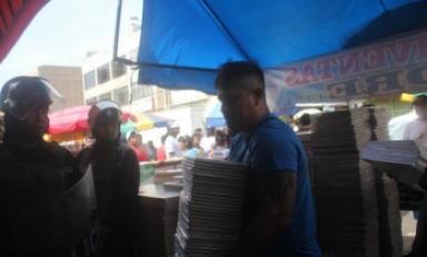 En la calle Juan Cuglievan se encontró algo similar, ya que supuestos ambulantes, negociantes de útiles, al ser exhortados a dejar la vía pública, almacenaron la mercadería en un stand contiguo de la plataforma, admitiendo el conductor del puesto, que era de su propiedad.