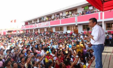 Durante la inauguración de obras para el mejoramiento y ampliación de la institución educativa N° 10010 “Sara Bullón” en Lambayeque, el mandatario subrayó que gracias a dicha inversión en los últimos años se ha logrado “recuperar terreno” que la educación pública había cedido ante la educación privada.