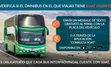 Verifica que el SOAT de un vehículo esté activo enviando un mensaje de texto gratuito al 90900, con la placa del vehículo, o a través de la aplicación “Consulta SOAT”, disponible en APP Store y Google Play.