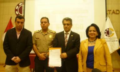 Firmaron este convenio el General PNP César Gentille Vargas, jefe de la Región Policial de La Libertad; Hermes Escalante, vicepresidente de la Cámara de Comercio, y la periodista Karyna de Orbegoso, directora de Trujillo en Línea.