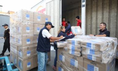 Este material consiste en equipos de cómputo (laptop, impresora, inversor y modem), así como paquetes de útiles para la instalación, escrutinio y reserva, además del paquete para el coordinador de local de votación, material de contingencia de la Solución Tecnológica de Apoyo al Escrutinio (STAE), ánforas y cabinas de votación, así como indumentaria electoral (chalecos y polos).