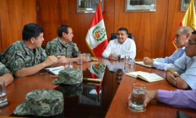 El otro asunto que se trató fue la difícil situación que afrontará nuestra región, durante las lluvias del fenómeno del Niño, por tal razón el Ejército Peruano, tendrá una participación muy activa con el apoyo de maquinaria diversa para obras, por ejemplo en la descolmatación de canales y limpieza de drenes