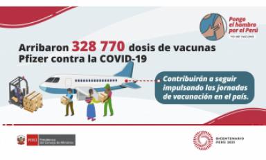 El envío de 328 770 dosis de vacunas, que llegó anoche al Perú, complementa las 702,000 dosis del mismo laboratorio que recibió nuestro país el pasado domingo.