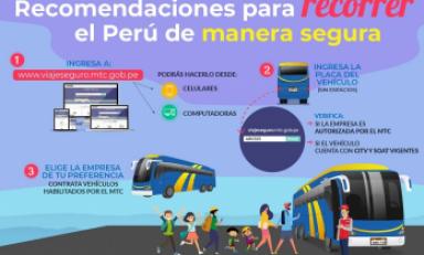 Además, la mencionada web permitirá conocer si las unidades de una empresa terrestre nacional cuentan con el Seguro Obligatorio contra Accidentes de Tránsito (SOAT) y el Certificado de Inspección Técnica Vehicular (CITV) vigentes. De esta manera, se asegurará que los usuarios del servicio tengan realmente un viaje seguro.