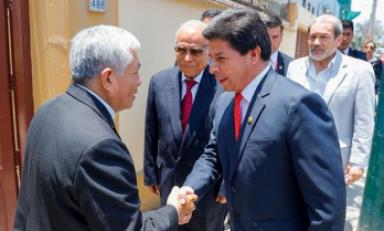 Pedro Castillo acudió acompañado por el presidente del Consejo de Ministros, Aníbal Torres, y otros integrantes del Gabinete a la sede de esta institución ubicada en el distrito de Jesús María aproximadamente al mediodía.