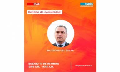 Chiclayo en Línea.- Del próximo 15 al 17 de octubre, IPAE Asociación Empresarial llevará a cabo la primera edición de #CADEjóvenes Líderes, spinoff de CADE Universitario. Esta nueva propuesta busca congregar a los jóvenes para inspirarlos, con el objetivo de integrar ideas para que ellos puedan ser parte de la construcción de un Perú desarrollado. Para lograr este objetivo, es fundamental conversar sobre la construcción de comunidad y cómo mediante esta se puede convertir la incertidumbre en una oportunidad. Por ello, el próximo sábado 17 de octubre se contará con la exposición de Salvador del Solar y Christian Bush, profesor de la Universidad de New York.