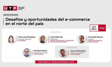 Chiclayo en Línea.- La Universidad Tecnológica del Perú (UTP) realizará el conversatorio virtual “Desafíos y oportunidades del e-commerce en el norte del país”, en el que representantes de los sectores empresariales de Lambayeque, La Libertad y Áncash participarán como ponentes.