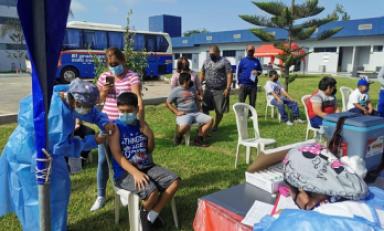 En su primer día de la jornada, más de 100 niños y niñas recibieron su primera dosis de la vacuna contra la COVID-19 “Para esta actividad, los menores llegaron acompañados de sus padres, quienes se trasladaron en sus vehículos hasta el vacuna car instalado en el campus de la UCV Chiclayo”, manifestó Lesly Quispe, responsable del equipo técnico de Promoción de la Salud de la GERESA Lambayeque.