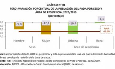 Respecto al área de residencia, la contracción fue más considerable en el área urbana (-16,4%) que en el área a rural (1,1%).