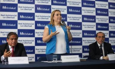 La titular de EsSalud visitó el Hospital Víctor Lazarte donde inauguró la nueva emergencia de este nosocomio y entregó equipamiento médico en beneficio de 700,000 asegurados de la Red Asistencial La Libertad.