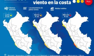 Chiclayo en Línea.- La velocidad del viento se incrementará en la costa del país hasta el miércoles 14 de julio y para hoy lunes 12 se prevé velocidades por encima de los 38 kilómetros por hora en Ica y hasta los 33 kilómetros por hora en Áncash y Lima.