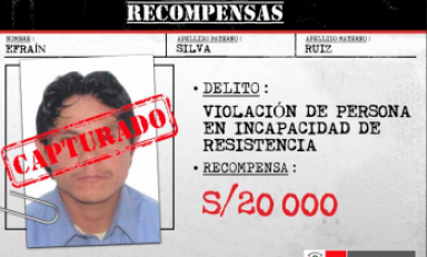 Chiclayo en Línea.- La Policía Nacional del Perú (PNP) capturo en Chiclayo a Efraín Silva Ruiz, quien está incluido en el Programa de Recompensas Que Ellos se Cuiden por el delito de violación a persona en incapacidad de resistencia. El Ministerio del Interior (Mininter) ofrecía S/ 20 000 por información que conlleve a su captura.