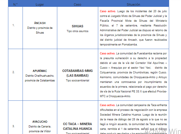 Chiclayo en Línea.- La Defensoría del Pueblo registró tres nuevos conflictos sociales,durante el mes de agosto, ubicados en las regiones de Ucayali, La Libertad y Áncash.