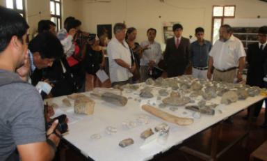La presentación de estas importantes piezas paleontológicas a los medios locales, se realizó en una especial ceremonia por Walter Alva y la familia Tantaelán Tafur, familiares de la donante.