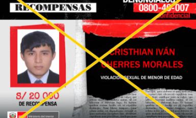 Chiclayo en Línea.- Mediante acciones de Inteligencia, la Policía Nacional capturó hoy en Ferreñafe (Lambayeque) a Cristhian Iván Cherres Morales (21), incluido en el Programa de Recompensas “Que ellos se cuiden” por el delito de violación sexual a una menor de edad. El Ministerio del Interior (Mininter) ofrecía S/20 000 por datos veraces que conllevaran a su captura.